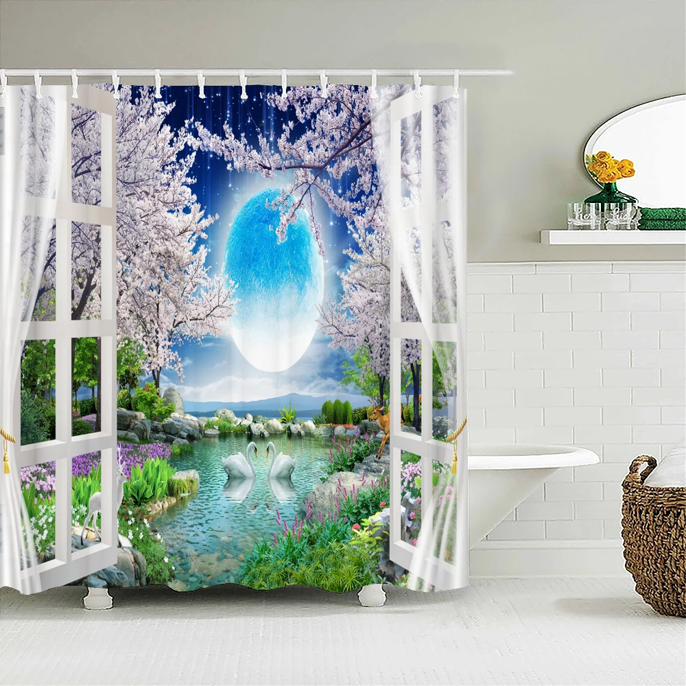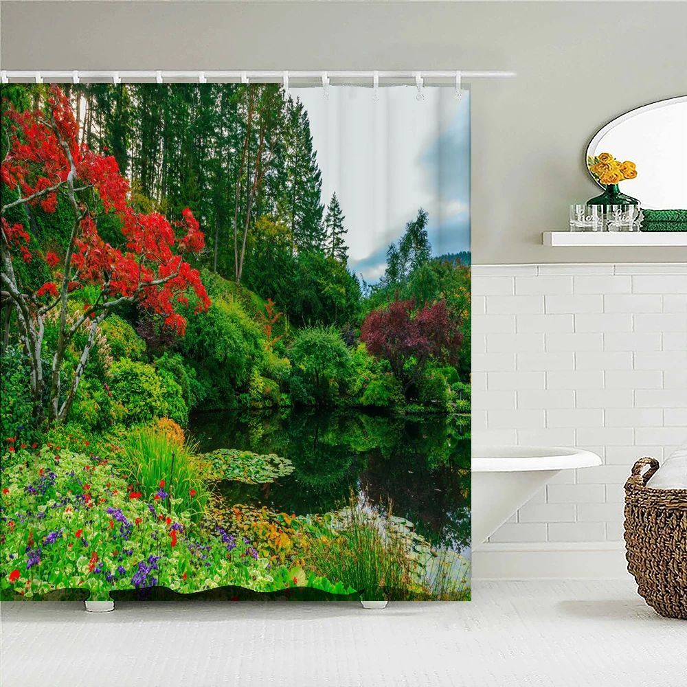 Высококачественная моющаяся душевая занавеска с природным пейзажем,...