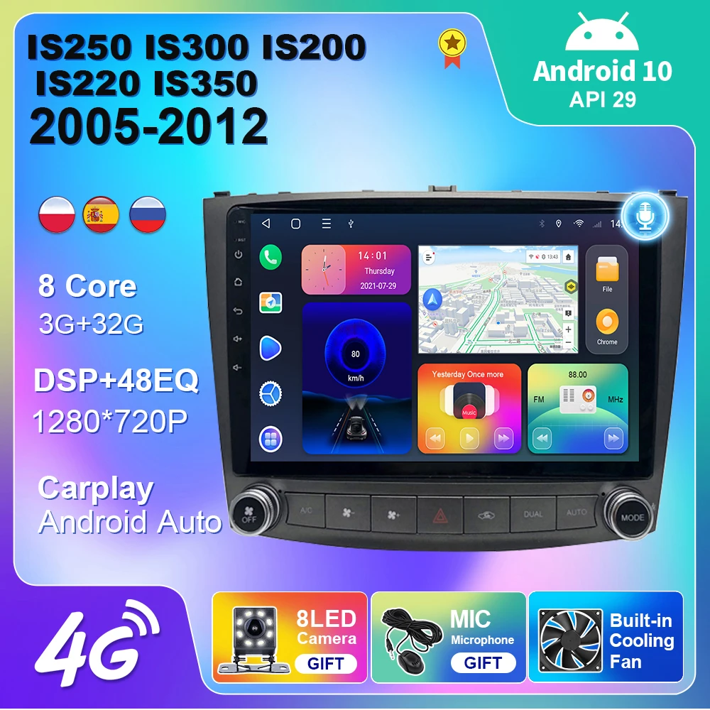 Автомагнитола 2 Din, Android 10 для Lexus IS250, IS300, IS200, IS220, IS350 2005-2012, 4G, Android, GPS-навигация, DVD-плеер