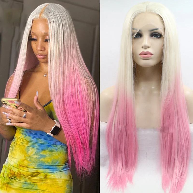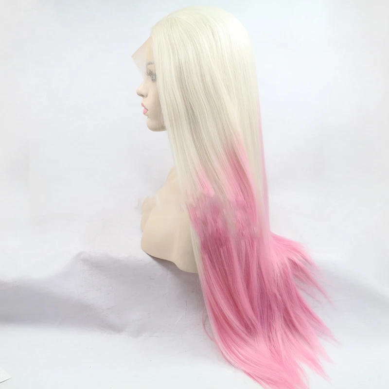 Косплей Лолита прямой синтетический горячий светильник розовый Омбре блонд кружевной передний парик парики для черных женщин фронтальные бесклеевые длинные волнистые