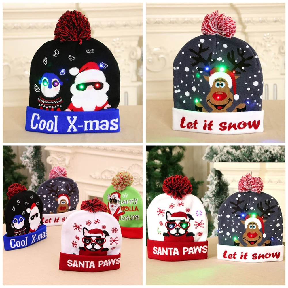 Светодиодная Рождественская шапка, свитер, вязаная шапочка, Рождественская вязаная шапка с подсветкой, рождественский подарок для детей, новогодние украшения 2022 года