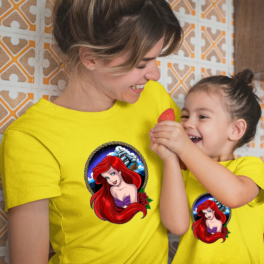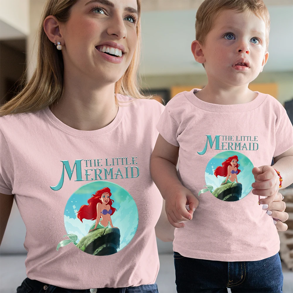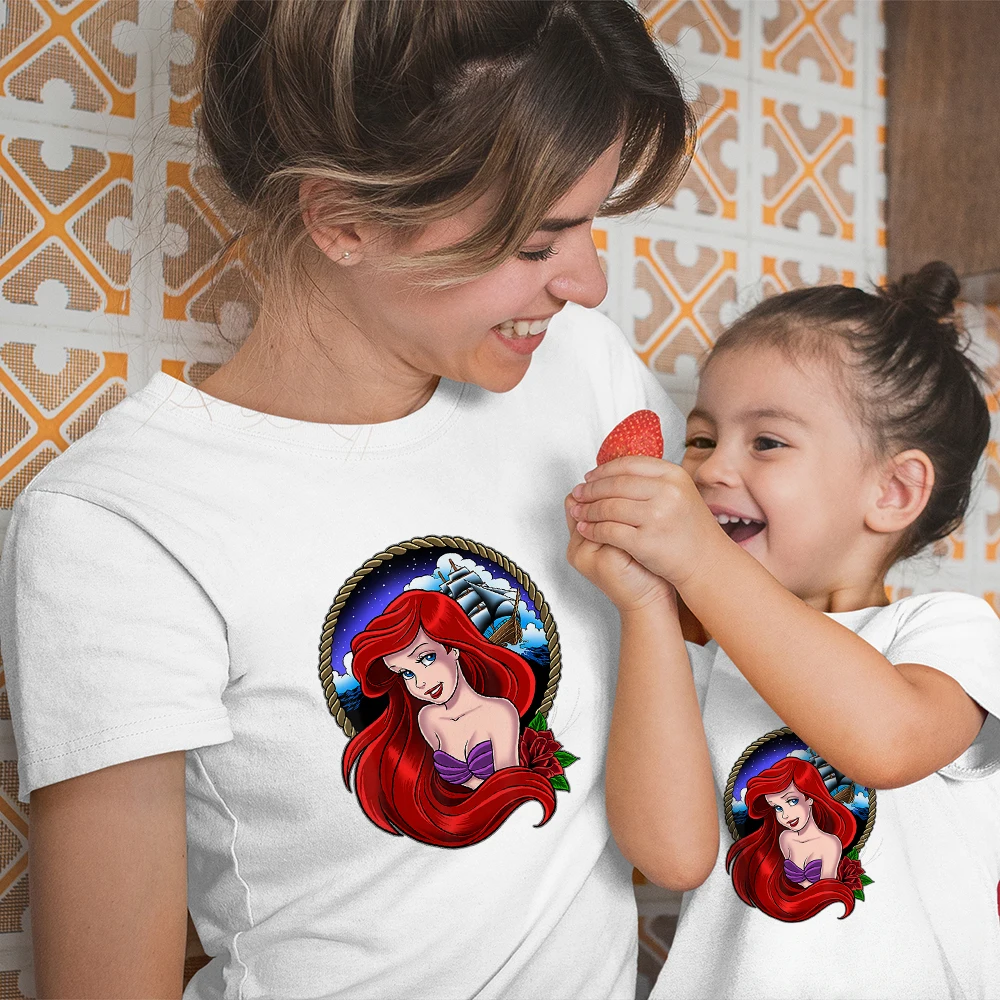 Универсальная семейная одежда Four Seasons, удобные футболки унисекс с милым рисунком Принцессы Disney Ариэль маленькая Русалочка