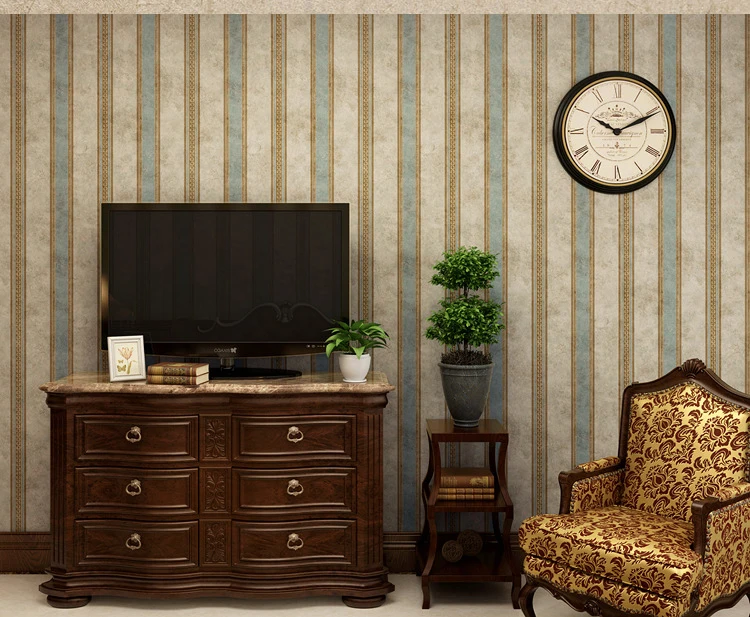 Нетканые ретро обои в стиле кантри с вертикальными полосками, покрытые гостиной, диваном, фоном для телевизора