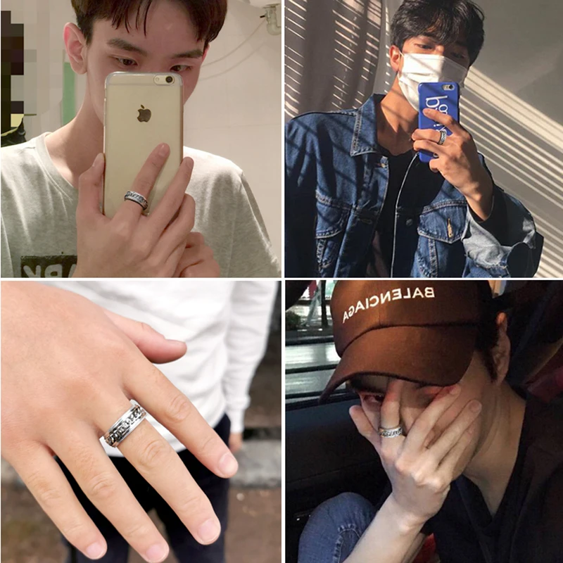 Кольца из титановой стали мужские, вращающиеся кольца в стиле ретро...