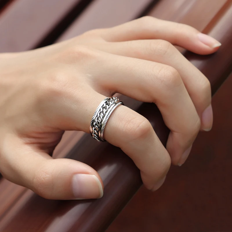 Кольцо для беспокойства из нержавеющей стали, вращающаяся цепь черн...
