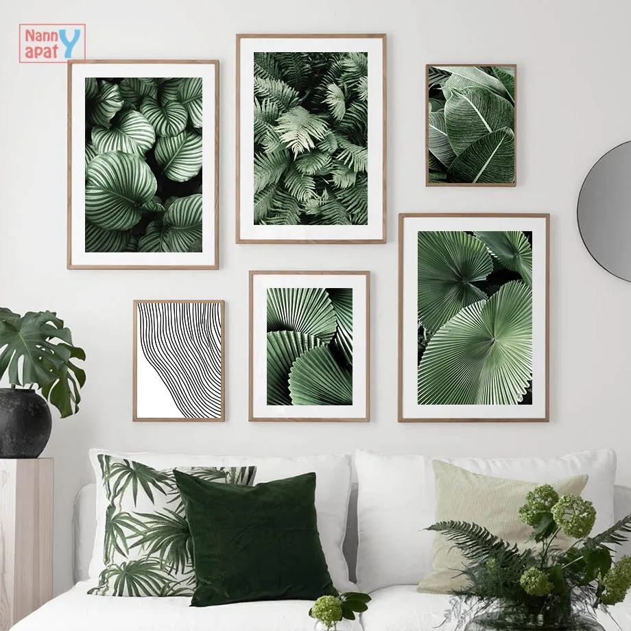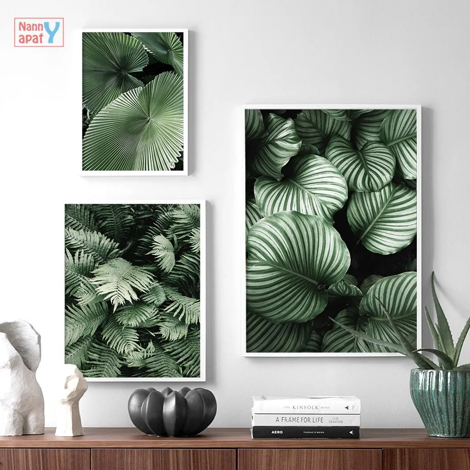 Monstera, банан, пальма, лист, холст, картина, зеленые растения, настенная лампа, скандинавский Декор для дома