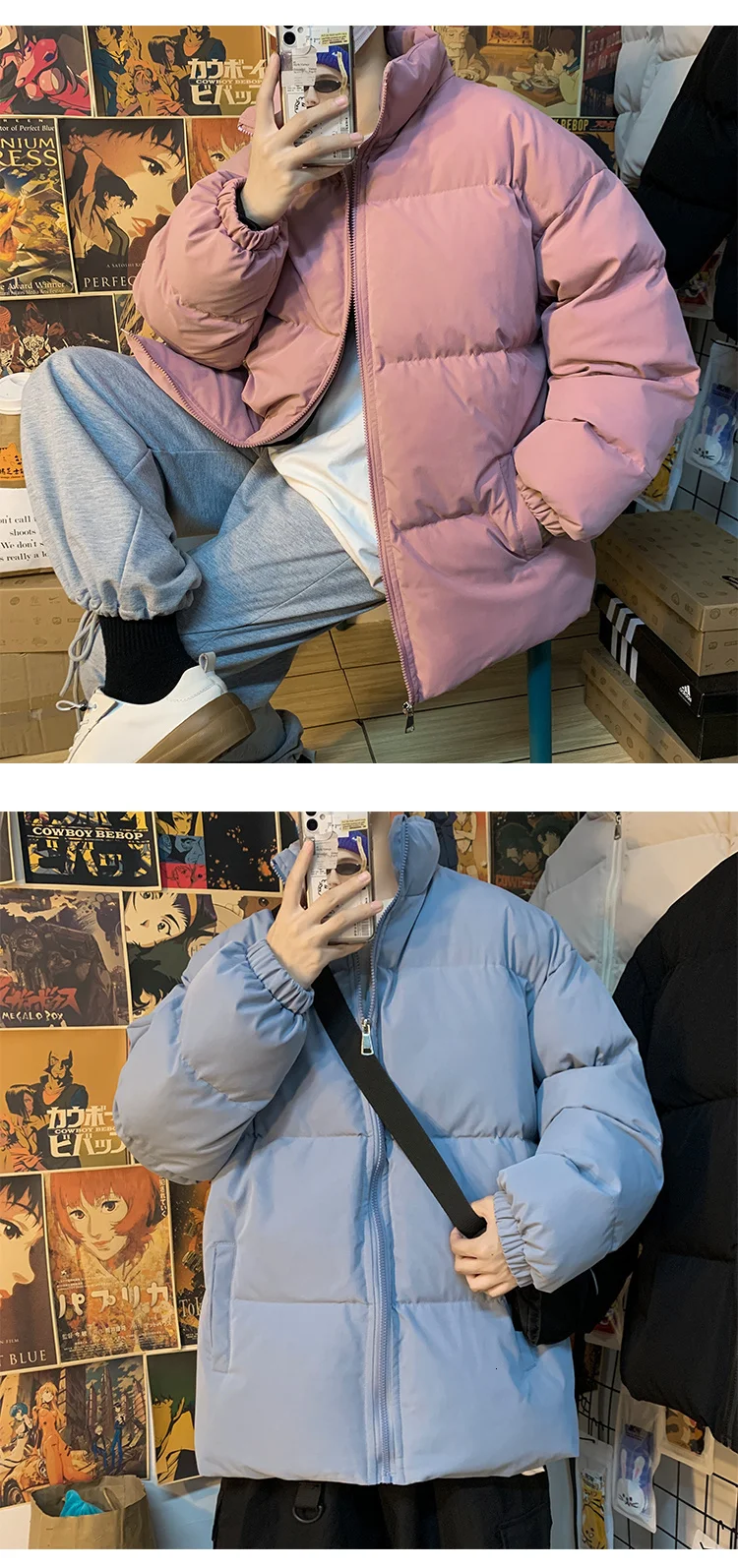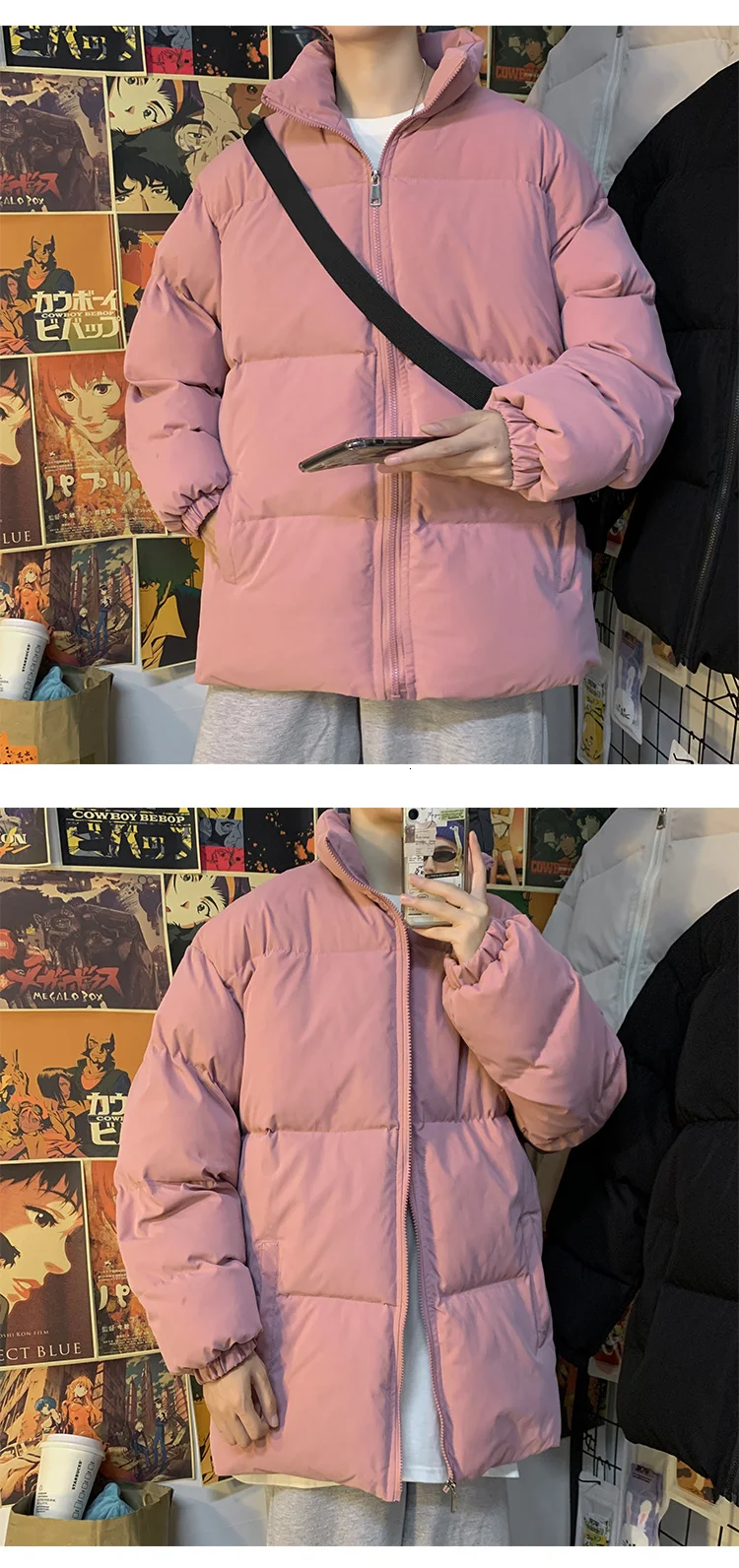 Мужская зимняя пуховая куртка с воротником-стойкой, в стиле Харадзюку