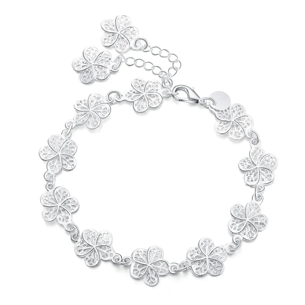 Браслет женский, серебристый, с цветами, классический, JSH-lh013