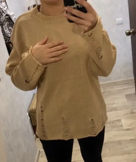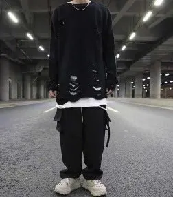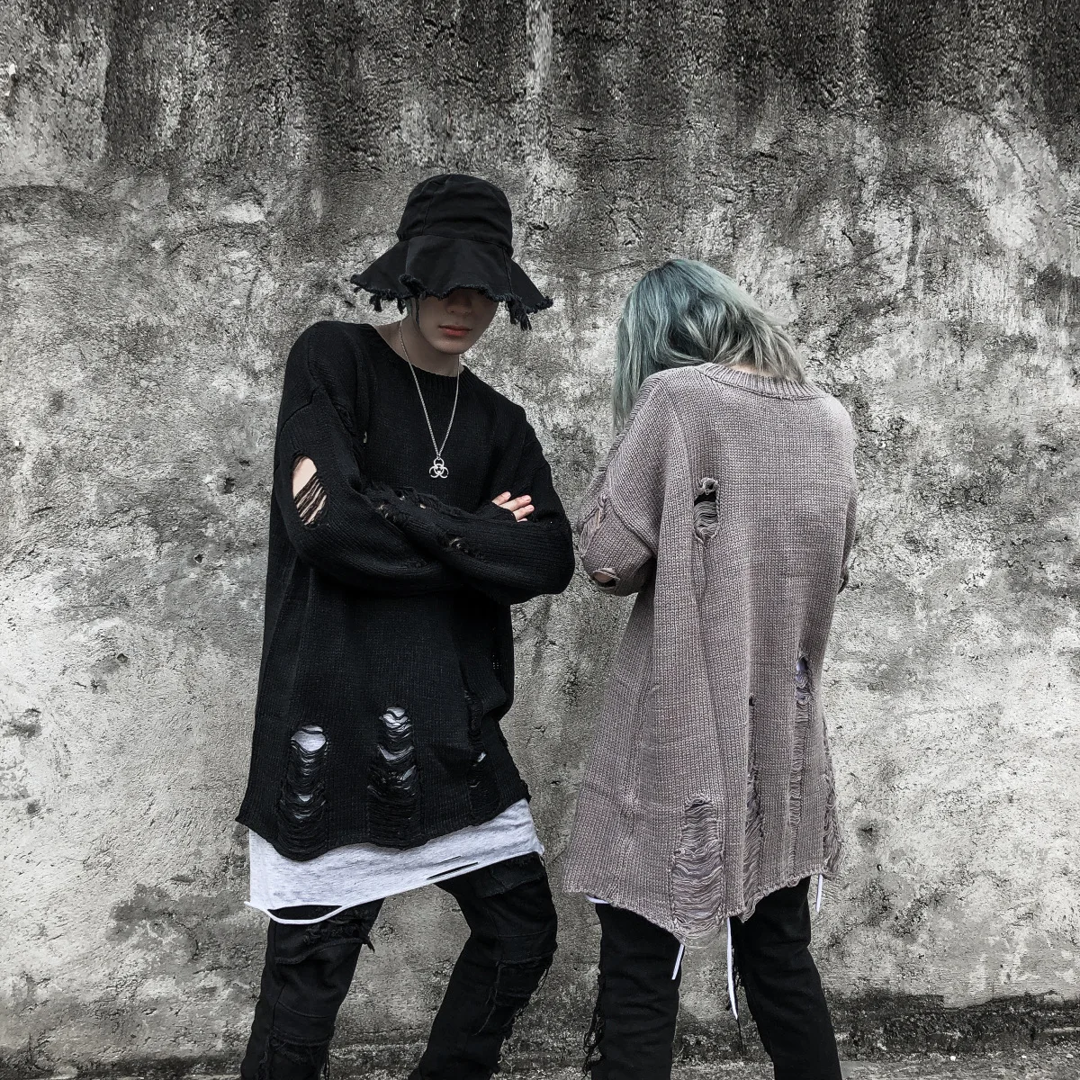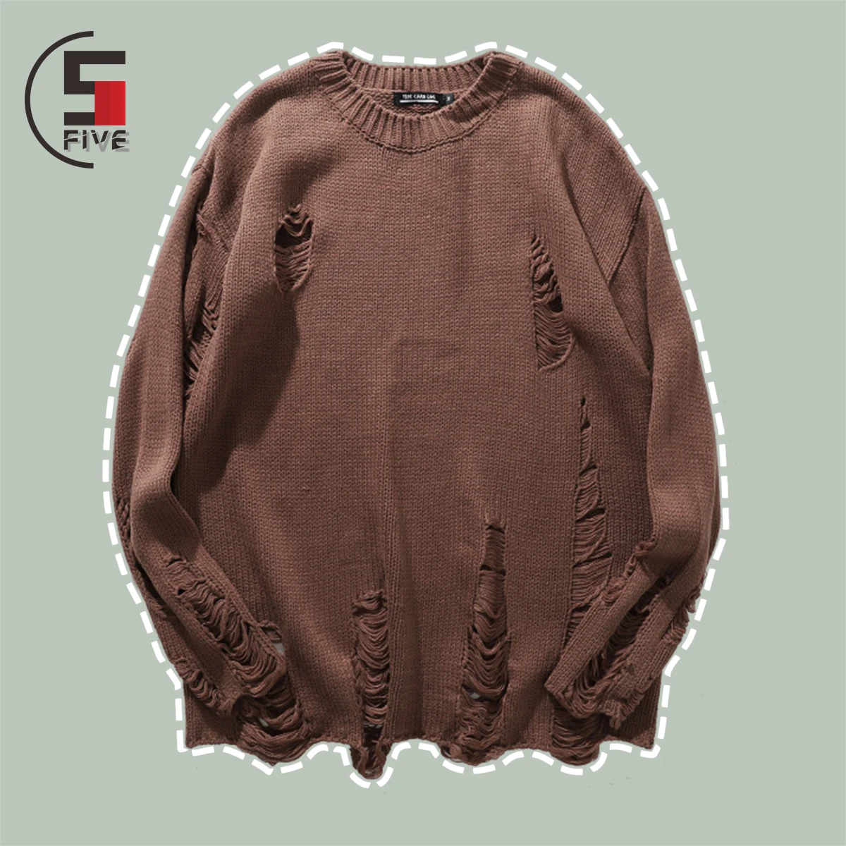 Мужской трикотажный свитер с дырками, Повседневный пуловер большого размера в стиле хип-хоп, уличная одежда в стиле Харадзюку, зима 2021