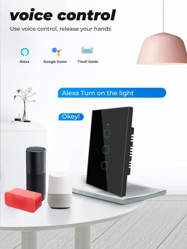 【Поддержка голосового динамика управление переключатель совместим с Alexa и Google Home Assistant, что позволяет использовать Голосовое управление smart switch для включения/выключения.