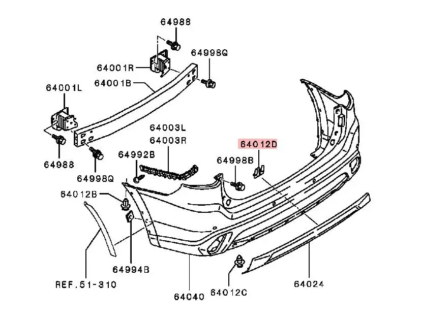 5 шт., зажимы для заднего бампера Outlander GF RR, зажим для бампера eclipse cross GK 6512A718 64012D