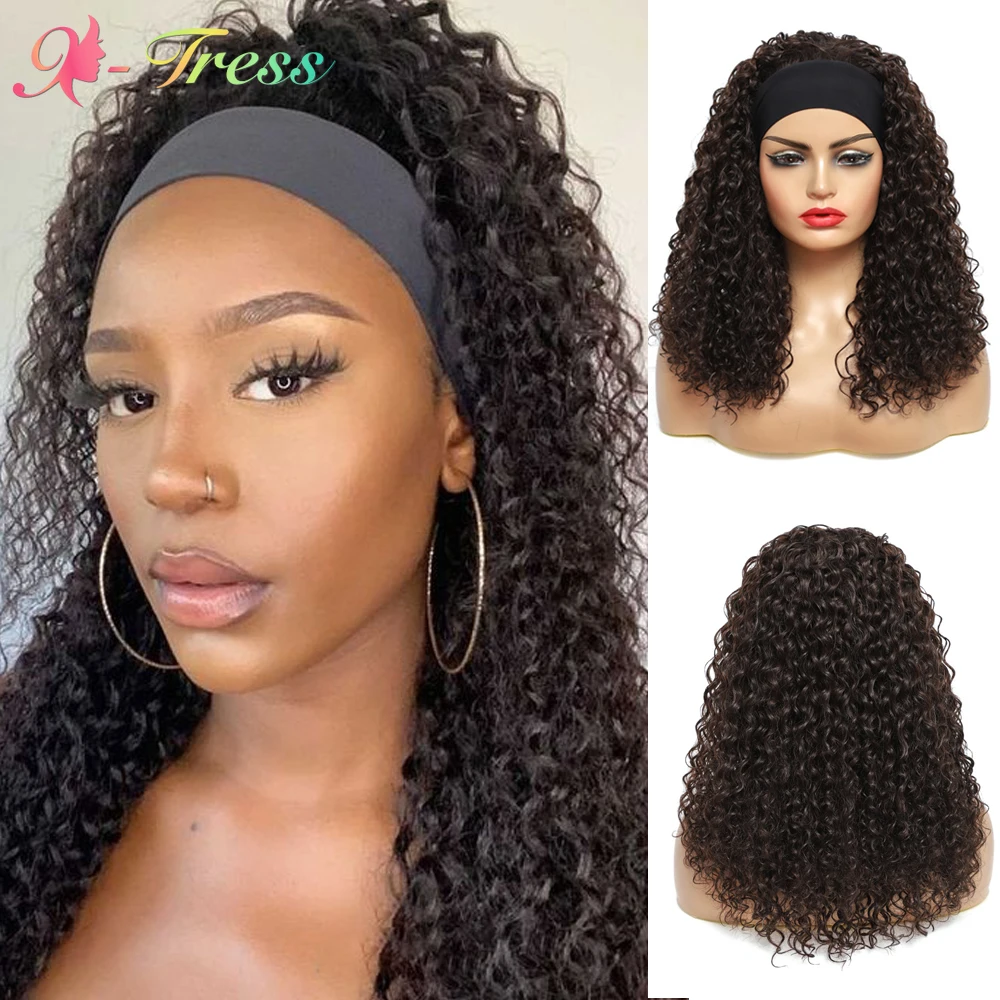 Парик с кудрявой головной повязкой длиной 24 дюйма, синтетический п...
