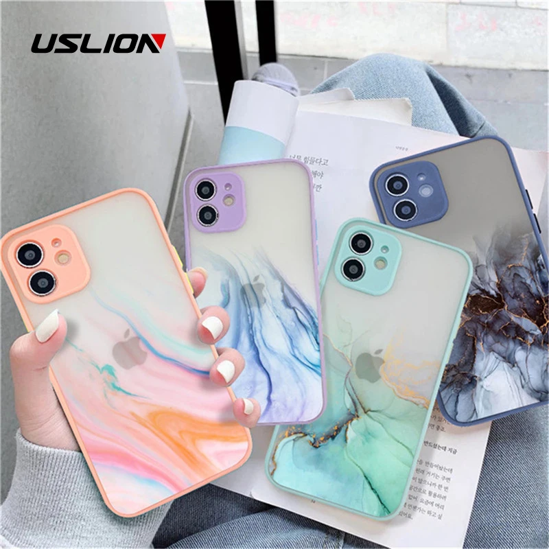 Чехол USLION с мраморной текстурой для телефона iPhone 12 11 Pro Max XR XS Max X 7 8 Plus 12 11 Pro 11, Ударопрочный Мягкий бампер, задняя крышка