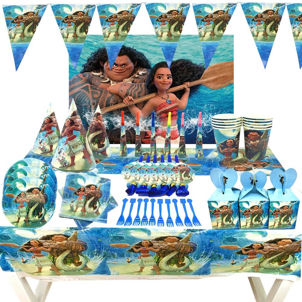 Moana тематическая вечеринка на день рождения декоративные принадлежности для детского душа бумажные чашки баннер Салфетка скатерть Moana одноразовые наборы посуды