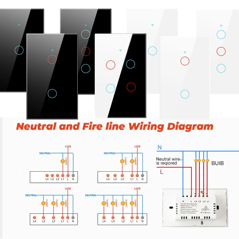 Умный сенсорный выключатель 1234 клавиш, Wi-Fi, настенная кнопка для светильник, 120*72 мм, нейтральный провод для Alexa и Google Home Assistant