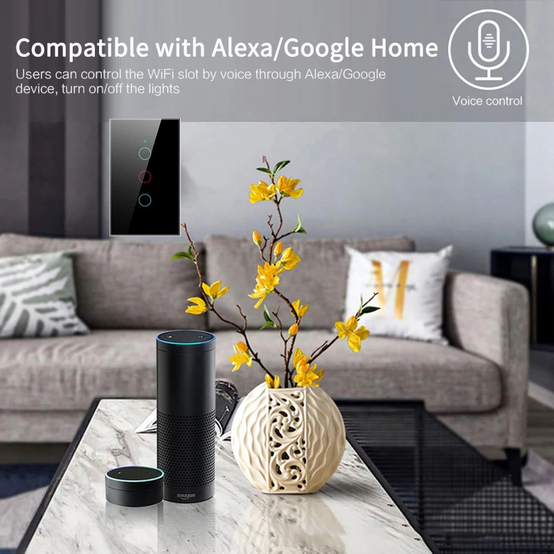 【Поддержка голосового динамика управление переключатель совместим с Alexa и Google Home Assistant, что позволяет использовать Голосовое управление smart switch для включения/выключения.