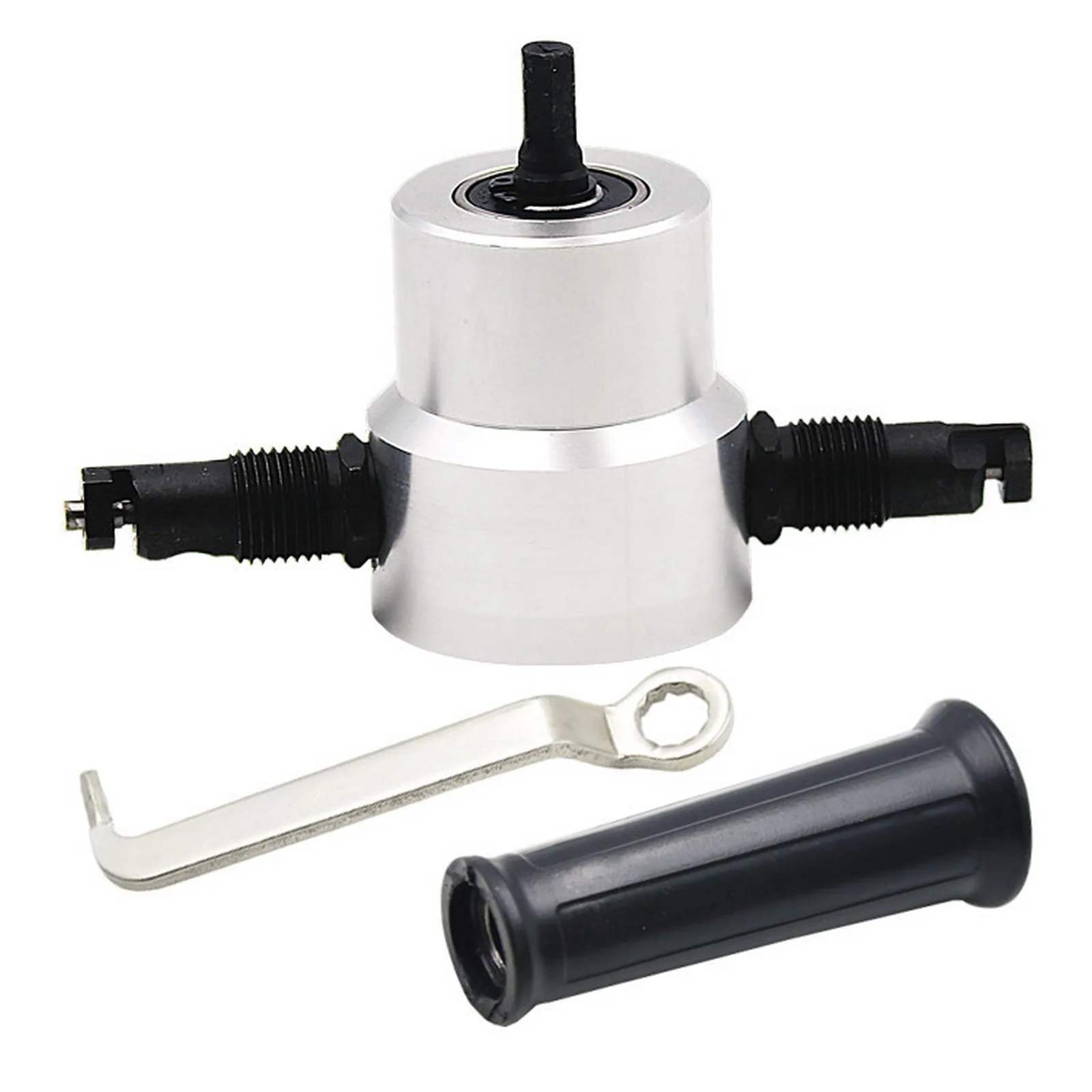Резак для листового металла с двойной головкой, инструмент для резки металла, инструмент для резки, насадка для инструмента, 360 градусов, регулируемая дрель с открытым отверстием