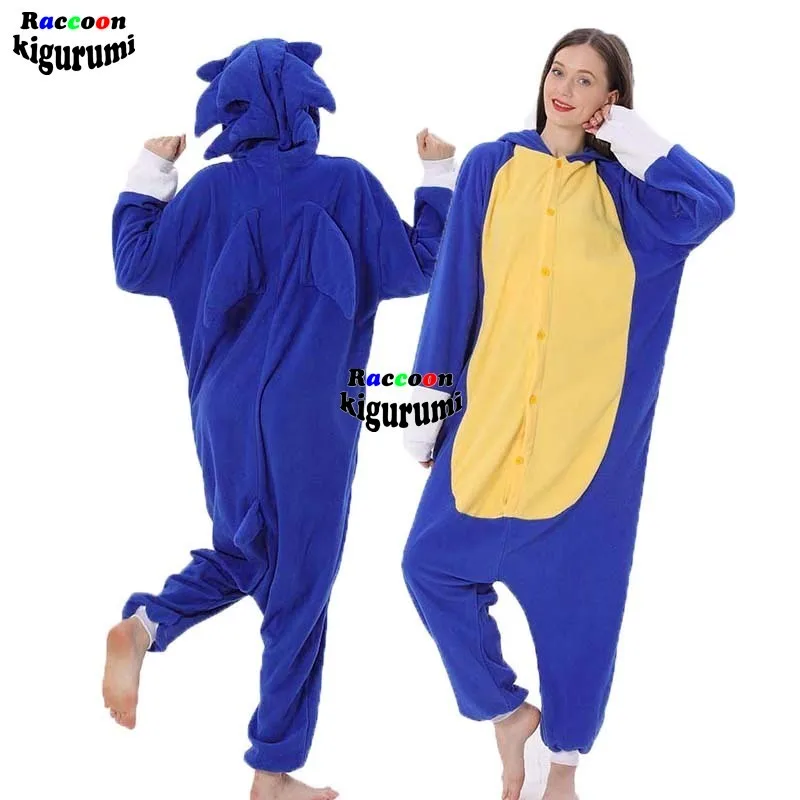 Новинка 2021, Пижама унисекс в виде синего ежика, флисовая зимняя пижама в виде животных, подарок на Хэллоуин, косплей, енот, Кигуруми для взрослых