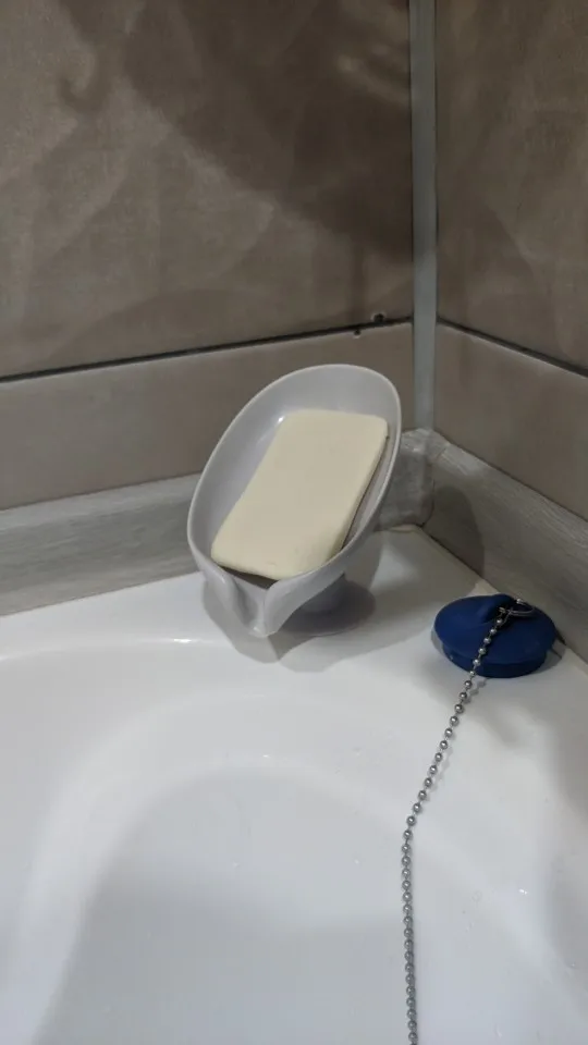 Я думал, что это стекло или керамика, но они пластиковые. Если мыло немного большое, оно не выдерживает и падает, присоска не очень хорошо прилипает