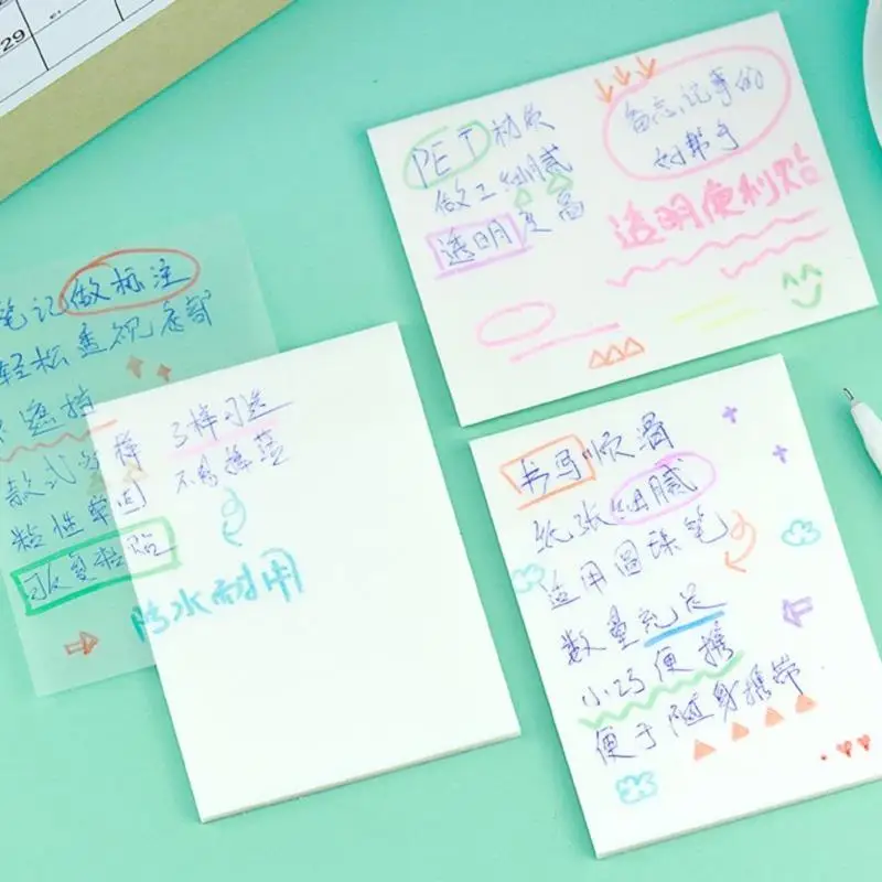 50 листов Водонепроницаемый прозрачная ПЭТ-Memo клейкая бумага для ...