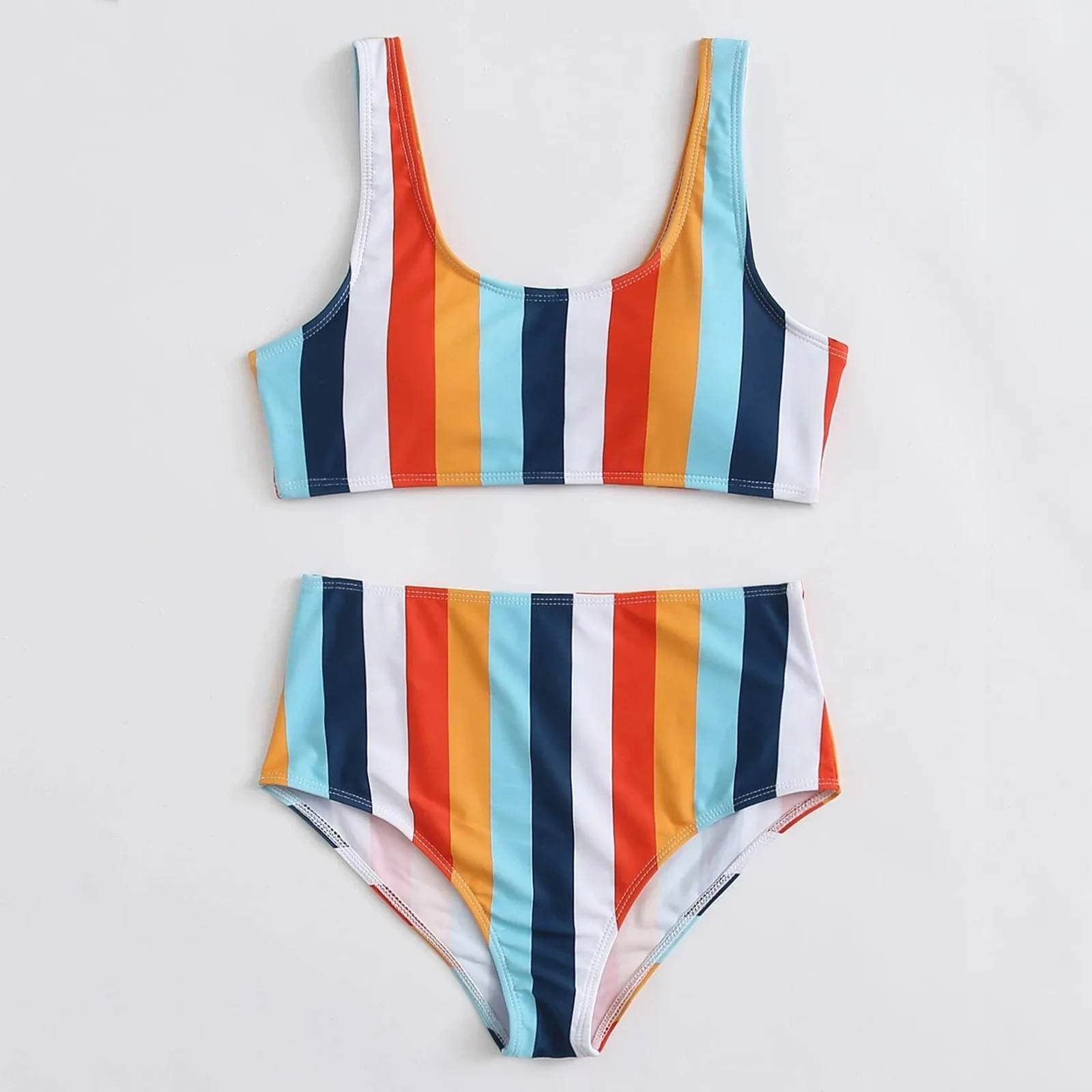 Женский купальный костюм 2021, женский полосатый купальник пуш-ап с высокой талией, комплект бикини с лямкой на шее, купальник из двух предметов, женский купальный костюм