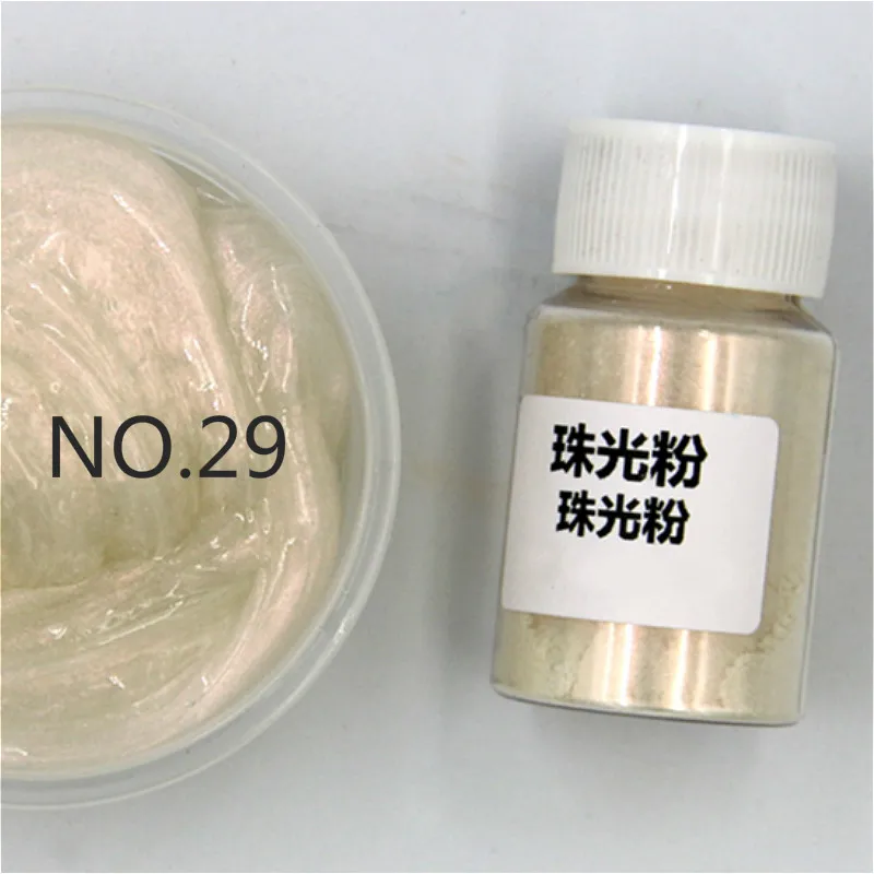 Перламутровые пигменты смешиваются с более прозрачными материалами, более красивый жемчужный блеск может быть изготовлен, также можно смешивать с прозрачными пигментами или красителями, чтобы получить соответствующий оттенок, но следует избегать использования непрозрачных ингредиентов или сильной краски, таких как диоксид титана, оксид железа и другие пигменты, Чтобы не повлиять на эффект жемчуга. Цветная серия перламутровых пигментов может быть произведена в соответствии с цветом различных жемчужных блесков.