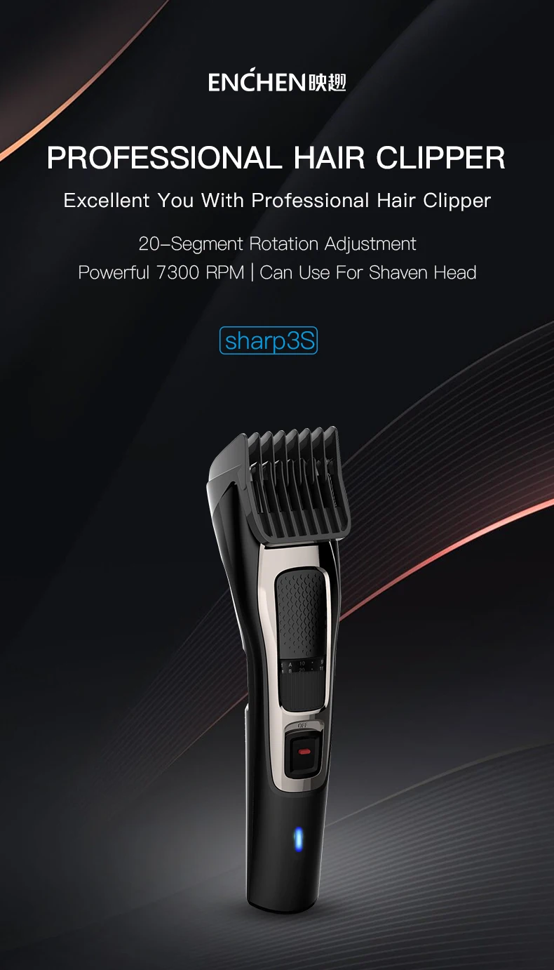 Спефикация:Бренд: ENCHEN машинка для стрижки волосМодель продукта: Sharp3SЦвет: черныйНоминальная мощность: 5 ВтНоминальное напряжение: 5 ВВремя зарядки: 120 минутВес нетто продукта: 139 гОсобенности:1. Любимый профессиональным парикмахером2. Мощный 7300 об/мин3. Режущая головка из сплава, легко отрезать медную проволоку, автоматическое шлифование, не тусклый после длительного использования4. R-образная круглая головка, острый, но безопасный5. 20 в поп упаковке, регулировка вращения Длина, отлично подходит для начинающих родителей6. ESM Интеллектуальная защита от застревания волос, двойная защита, двойная энергоэффективность7. Полная зарядка может использоваться в течение 4 месяцев8. USB интерфейс, используемый во время зарядки9. Легкая резка волос для всей семьи