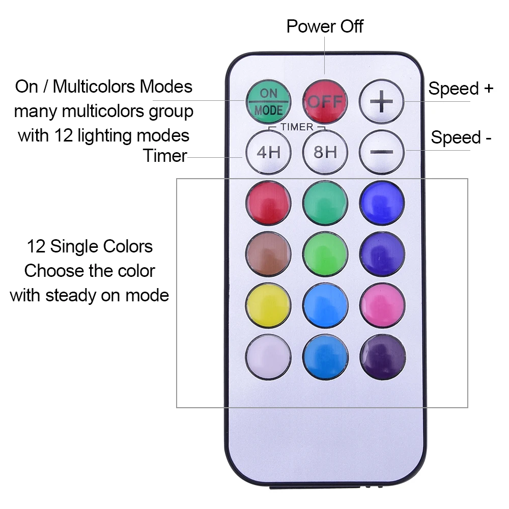 * 【Таймер и 12 режимов освещения регулировка скорости с скоростью + и скоростью-, 4H/6H/8H режим таймера часов, два вида ИК-пульта, с различными функциями.