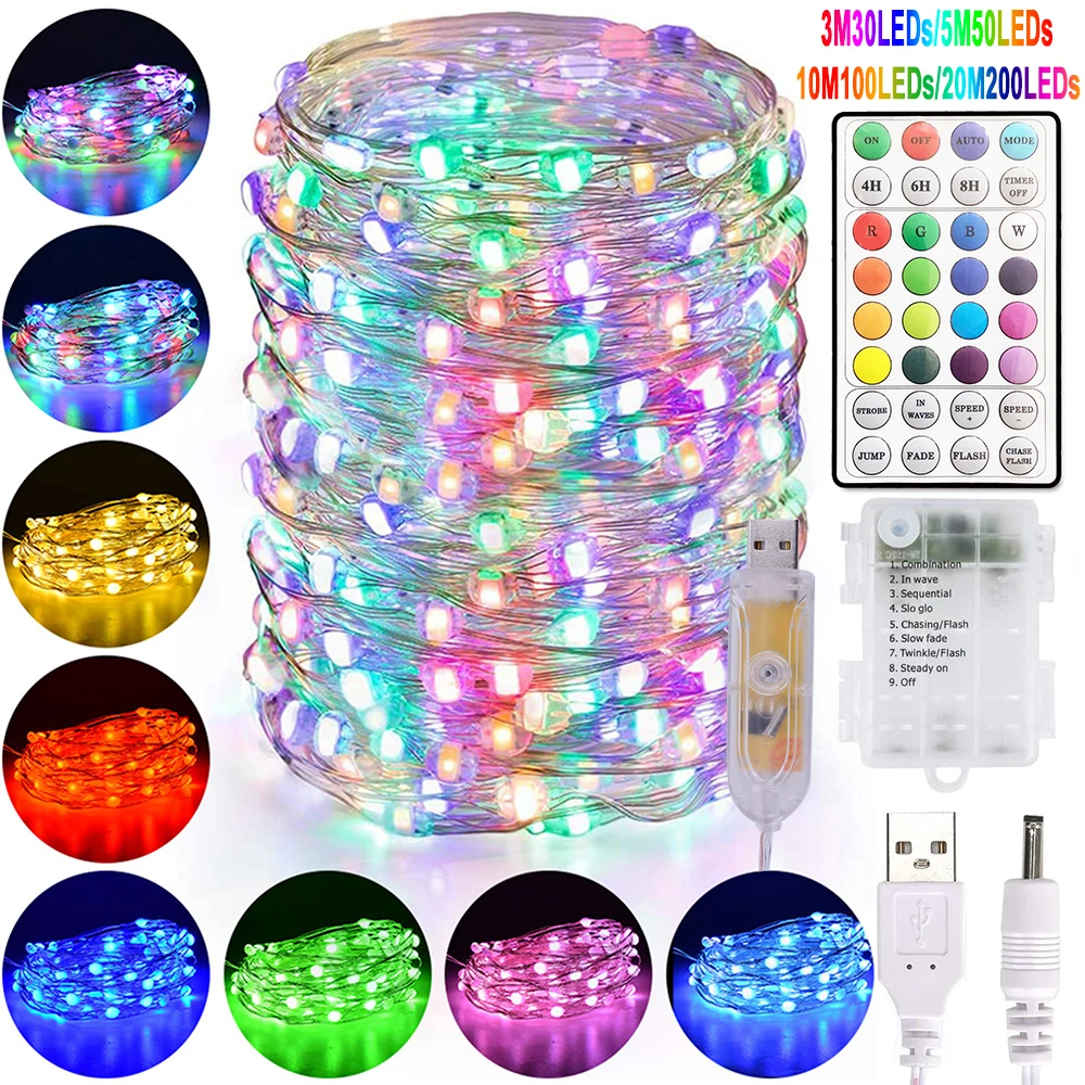 Умный RGBW разноцветные СВЕТОДИОДНЫЕ гирлянды светильник 3-20 м/9,9-66FT 30-200LEDs 12 светильник ing режимов usb-пду Управление светодиодный фонарь на медном проводе светильник s для дома вечерние Рождественский Декор