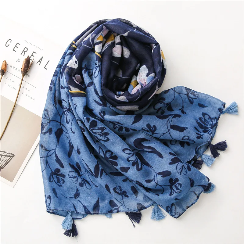 2020 Женская Осенняя модная темно-синяя ацтекская искусственная шаль шарф с принтом хлопковый снуд буфаны мусульманский хиджаб 180*90 см