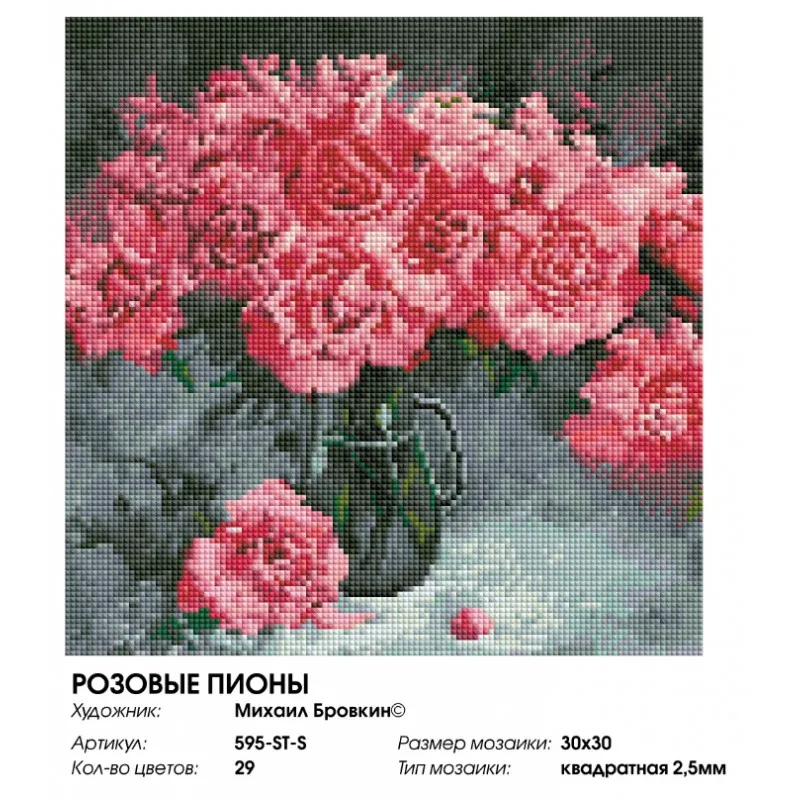 Набор для творчества Алмазная мозаика: 595-ST-S Розовые пионы