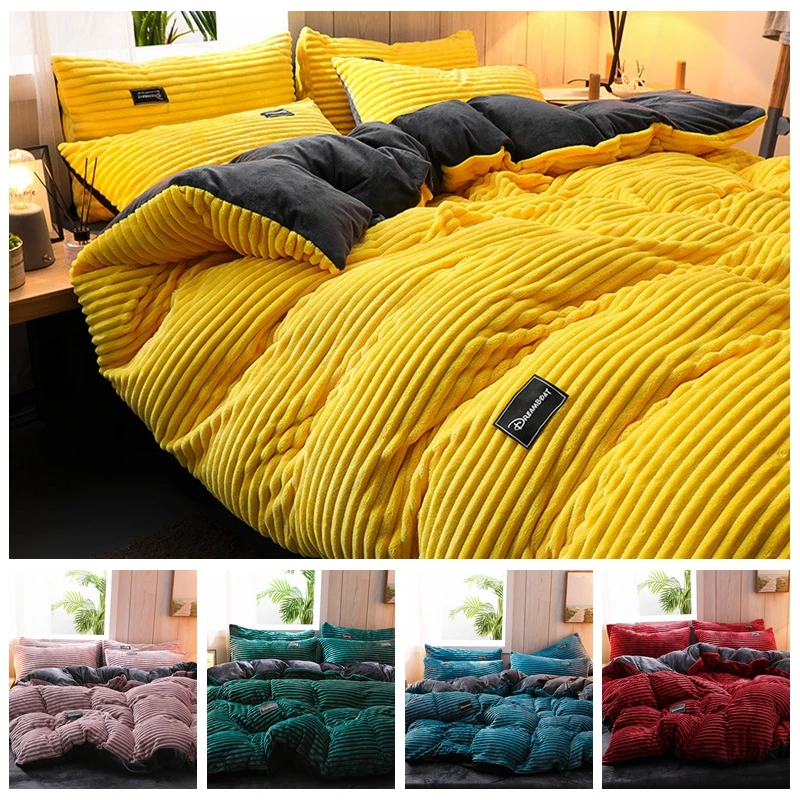 Домашний зимний теплый бархатный пододеяльник, Однотонный женский комплект, двойной Королевский пододеяльник для дома, спальни, отеля