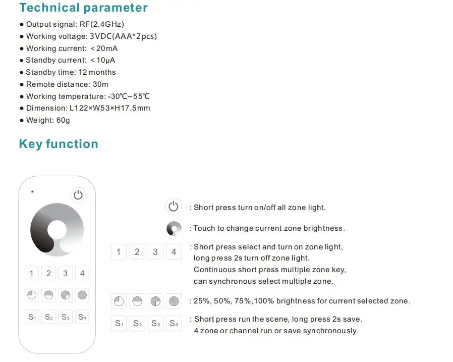 4 зоны RF2.4G монохромный сенсорный дистанционный пульт