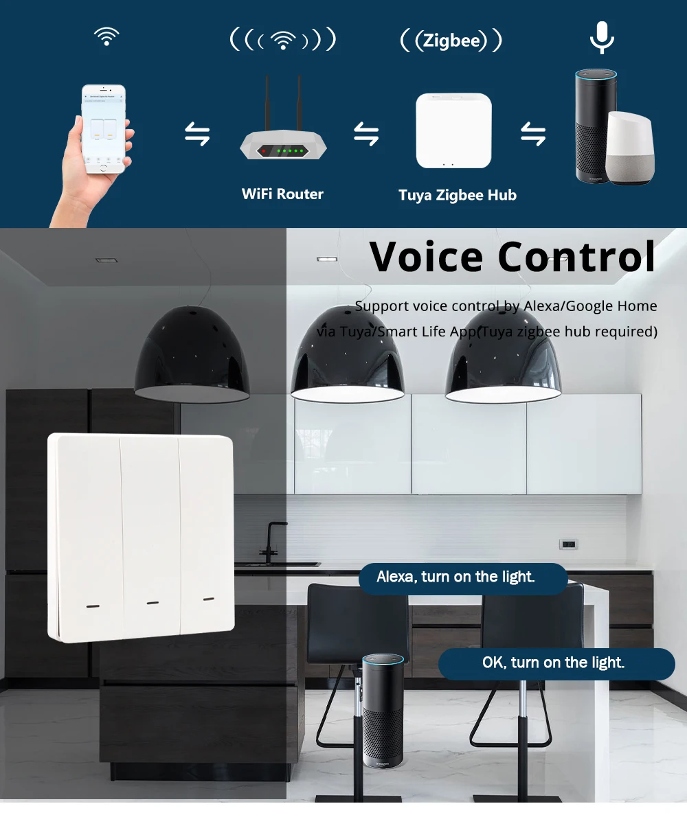 Zemismart Tuya Zigbee светильник, реле, приложение Smart Life, настенный выключатель, нейтральный, дополнительный, Alexa Google Home, Alice, голосовое управление