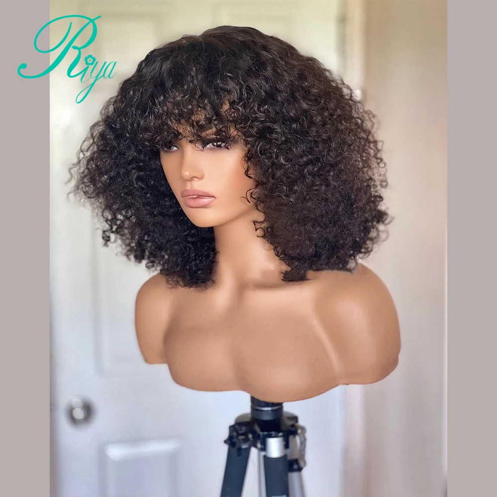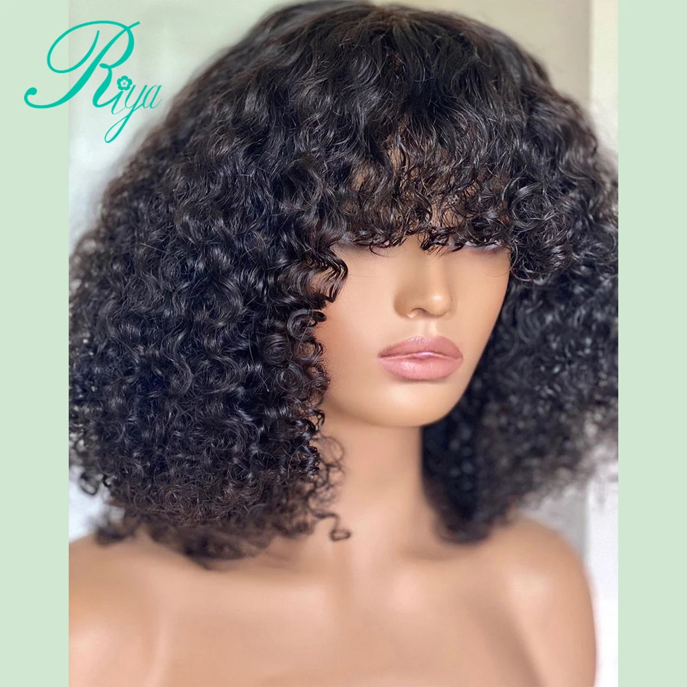 Недорогой парик Remy Riya для женщин, короткий, с кудрявыми волосами Боба, без клея, машинное изготовление, с челкой