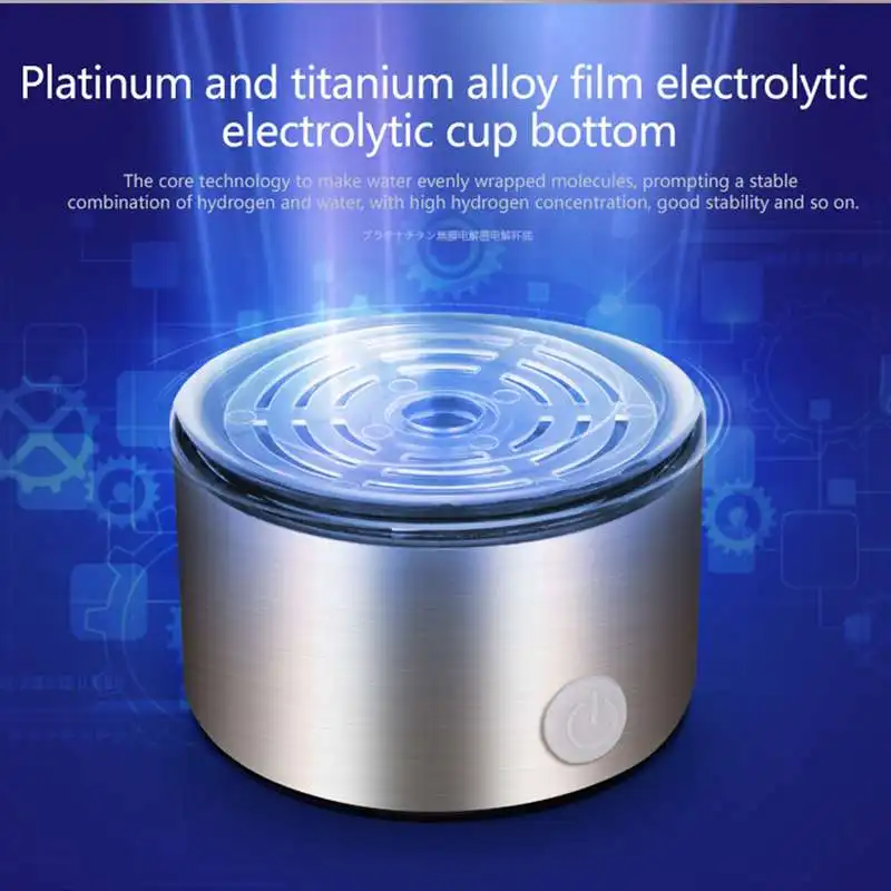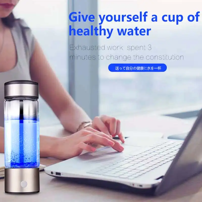 Характеристика:-Боро-кремниевое высокотермостойкое стекло, здоровый материал.-Интеллектуальный Платиновый титаниум, технология электролиза для достижения стабильного сочетания гидрогенов и воды, с высокой концентрацией гидрогенов, хорошей стабильностью и т. д.-Чувствительная Сенсорная кнопка. Емкостная сенсорная кнопка, чувствительная, с 3 минутами электролиза. Независимые кнопки, простая работа одной кнопкой.-Литиевая батарея большой емкости с универсальным интерфейсом USB для быстрой и удобной зарядки.-Уникальный раздельный дизайн. Корпус из боросиликатного стекла и основание разработаны отдельно, а основание откручивается и удобно помещается в воду для погружения в воду. Не только поддерживает температуру воды, но и удобен для питья.-Легко носить с собой-Подходит для использования в офисах, домах, путешествиях, автомобилях и школах.-Несколько способов зарядки: автомобильное зарядное устройство, Мобильная мощность, домашняя мощность.-Встроенное уплотнительное кольцо для эффективной предотвращения утечки. Нескользящая подошва. Круглая чашка.