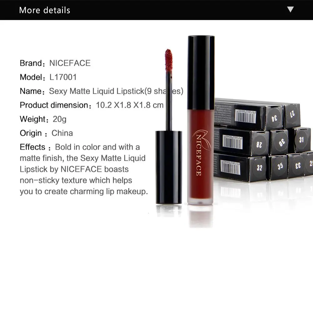 NICEFACE 8 цветов водостойкая Сексуальная Красная губная помада бежевая матовая Косметическая Помада