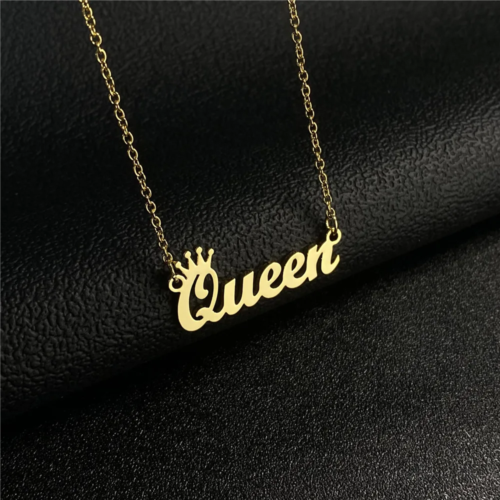 Именное ожерелье из нержавеющей стали на заказ от KristenCo, персонализированные буквы и корона, подвеска, ожерелье с табличкой для модных украшений