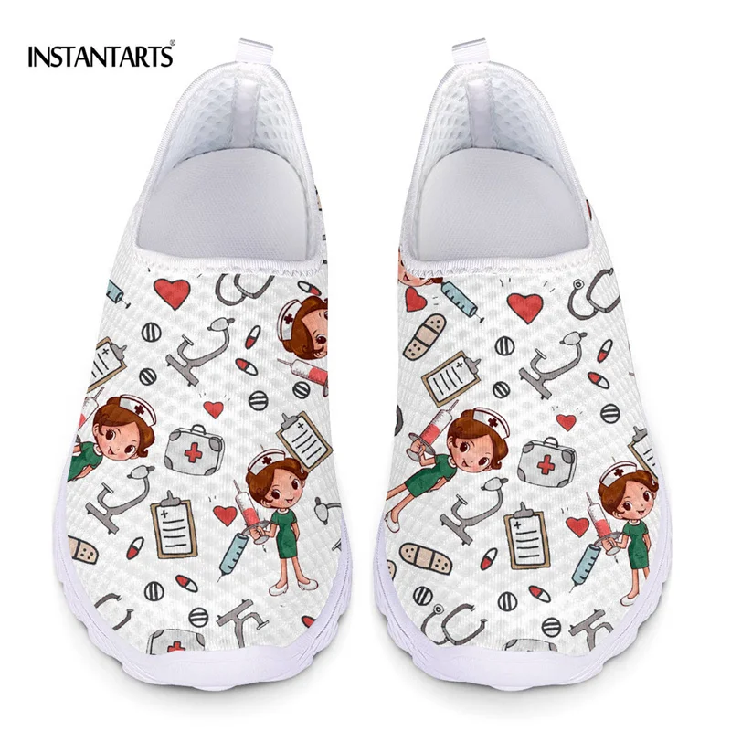 Модные легкие сетчатые кроссовки INSTANTARTS, новинка 2021, модная женская повседневная спортивная обувь с принтом для медсестер и медицинского оборудования