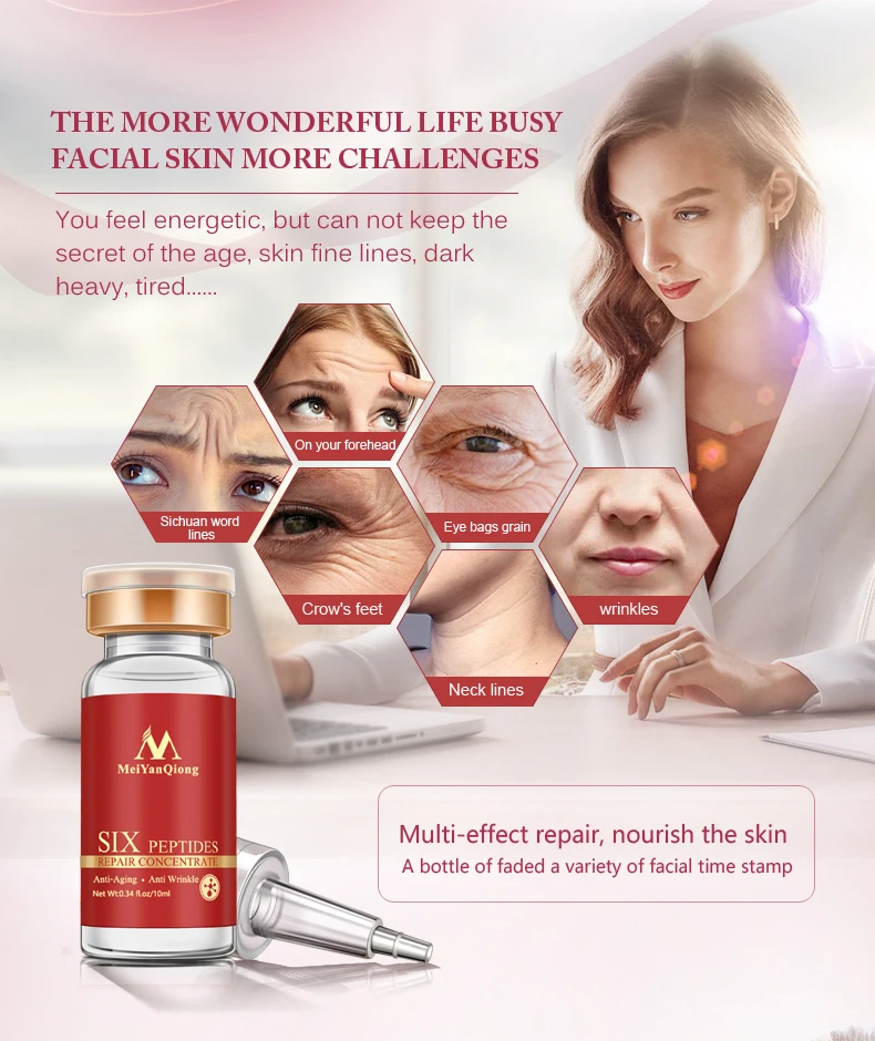 Восстанавливающий Концентрат Meiyanqiong для шести пептидов, эмульсия для омоложения кожи лица, продукты для ухода за кожей, Антивозрастная кислота, сыворотка против морщин