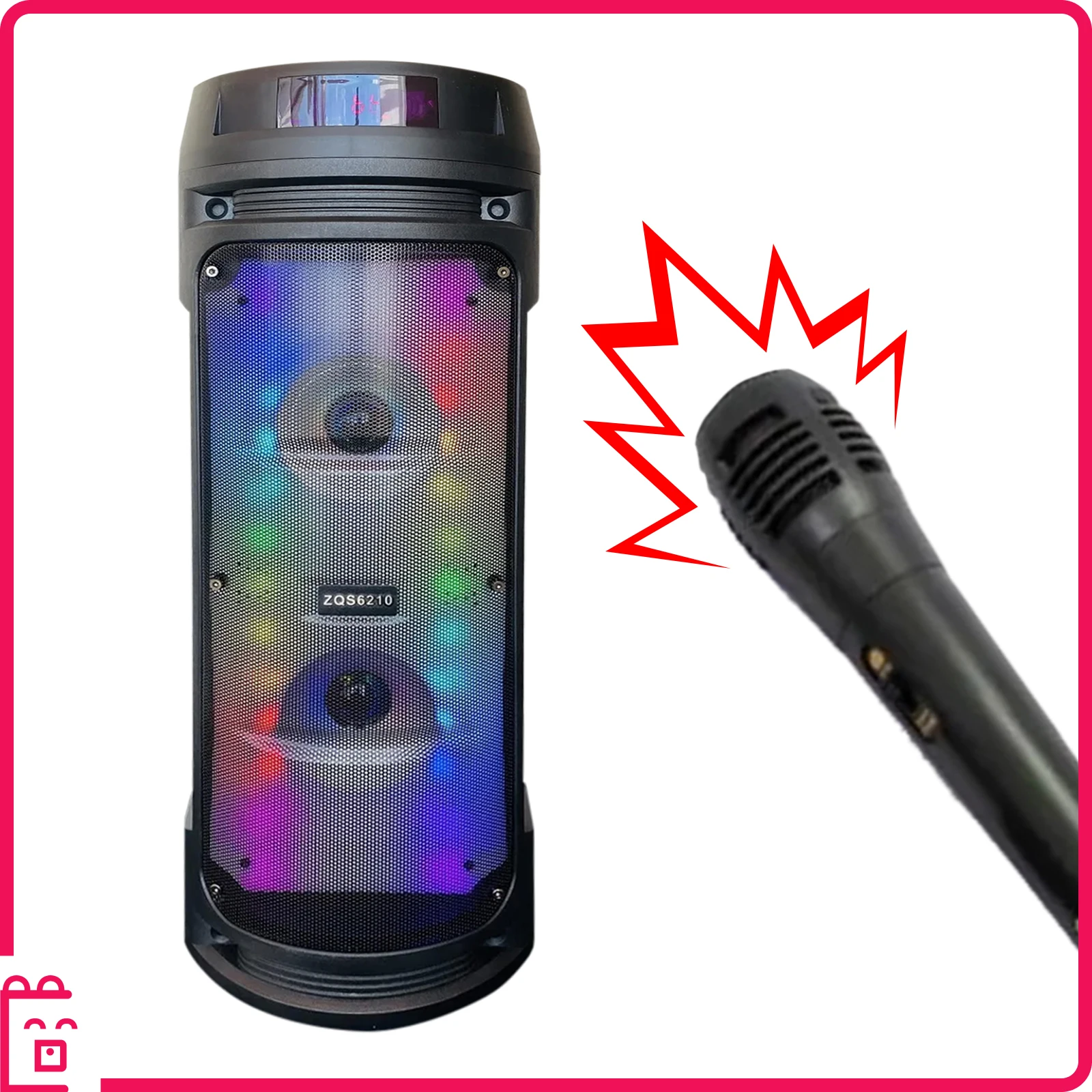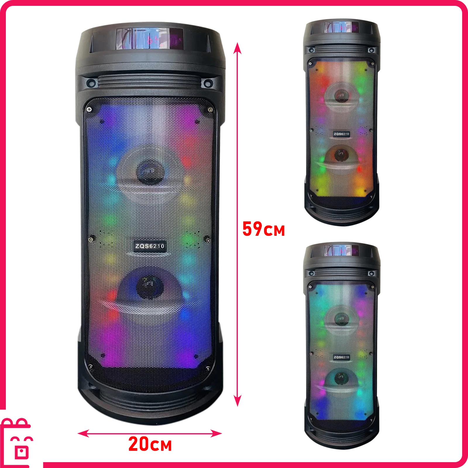 Портативная колонка BT Speaker ZQS-8210 с микрофоном и пультомПортативная колонка позволит делиться своей музыкой и создать нужную атмосферу, где бы Вы не находились. Отличное решение для вечеринки дома и на открытом воздухе, для праздника в кафе, ресторане, баре, поездки на природу, дачу, пикник.Портативная акустическая колонка JBK-6510 отличается качественным и громким звуком. Колонка имеет относительно небольшой вес и удобно размещается в багажнике или на заднем сидении автомобиля.Преимущества переносной колонки:- Колонку можно подключить к любому устройству с поддержкой Bluetooth и AUX: телефону, ноутбуку, ПК, MP3-плееру и пр.- Звук с колонки можно вывести на любые устройства с аудиовыходом: на телефон, ноутбук, ПК, MP3, MP4 и пр.- Встроенный цифровой MP3-дисплей для декодирования и воспроизведения MP3-файлов обеспечивает идеальное качество звука- FM-цифровое радио (87,5-108 МГц)- Внешняя TF-карта для хранения музыки- Мини-кнопка управления для выбора и регулировки громкости- Пульсирующая/статичная светодиодная подсветкаОсобенности портативной колонки:- Беспроводная потоковая передача музыки- USB-разъем для питания и подключения к другим устройствам- Можно заряжать как от сети, так и от другого устройства через кабель- Футуристичный дизайн впишется в любой интерьер- Аккумуляторная батарея на 4500 мАчКомплектация:1. Портативная колонка2. Пульт управления3. Беспроводной микрофон4. USB-кабельХарактеристики:Материал корпуса: пластикОсновной материал корпуса: пластик, металлРазмеры: 600х200х200 ммКоличество динамиков: 2Входные интерфейсы: USBПоддерживаемые беспроводные интерфейсы: Bluetooth 5.0Максимальная мощность: 30 ВтСопротивление: 4 ОмМощность фронтальных колонок: 30 ВтЧувствительность: 50 дБЕмкость аккумулятора: 4500 мАчВремя зарядки аккумулятора: 90 мин.Вес товара: 3900 г.