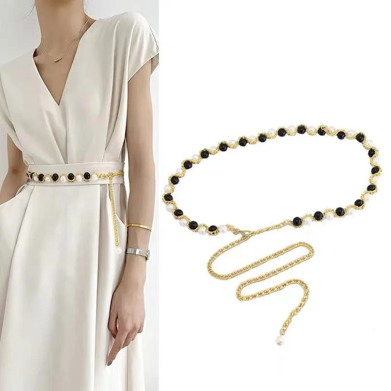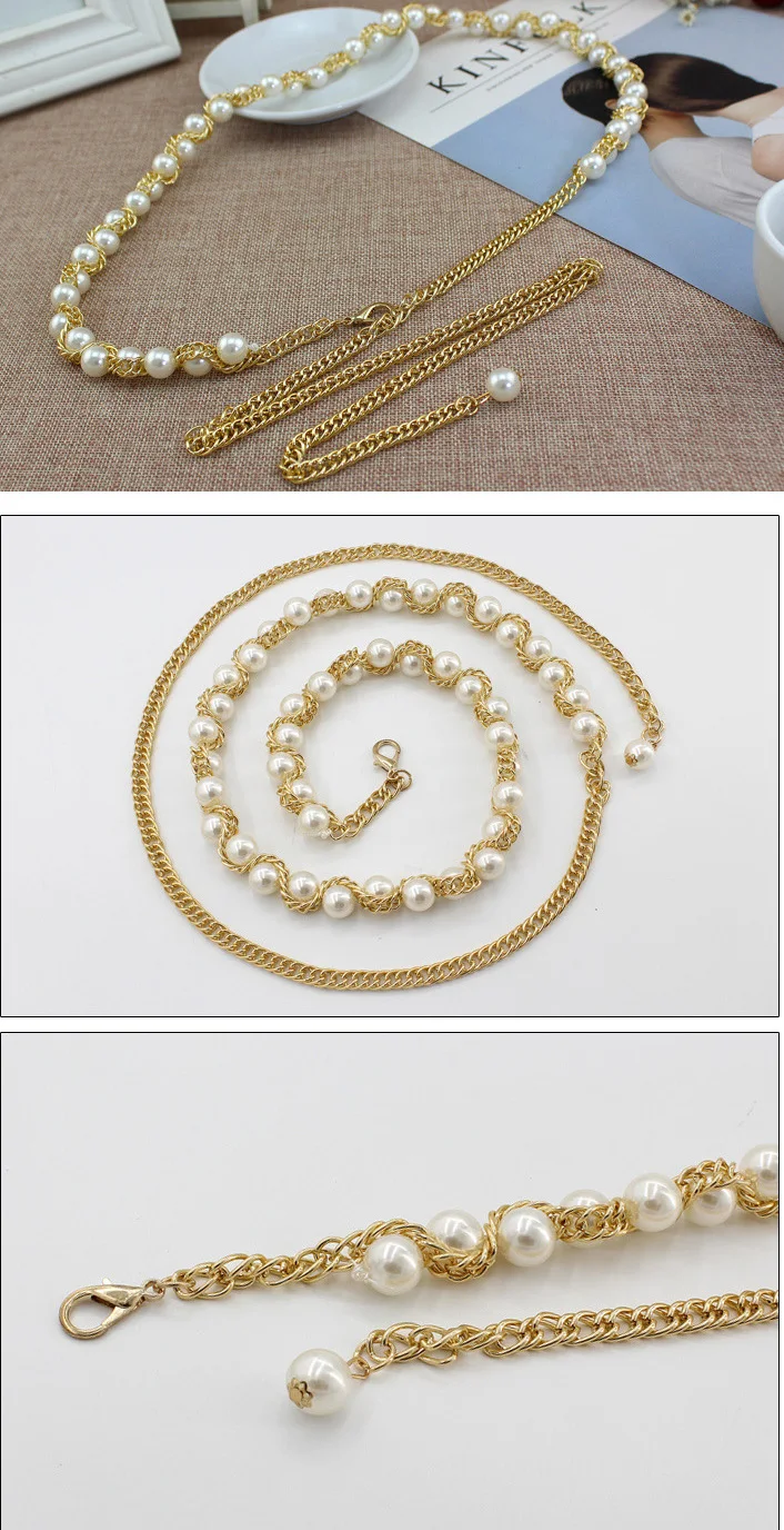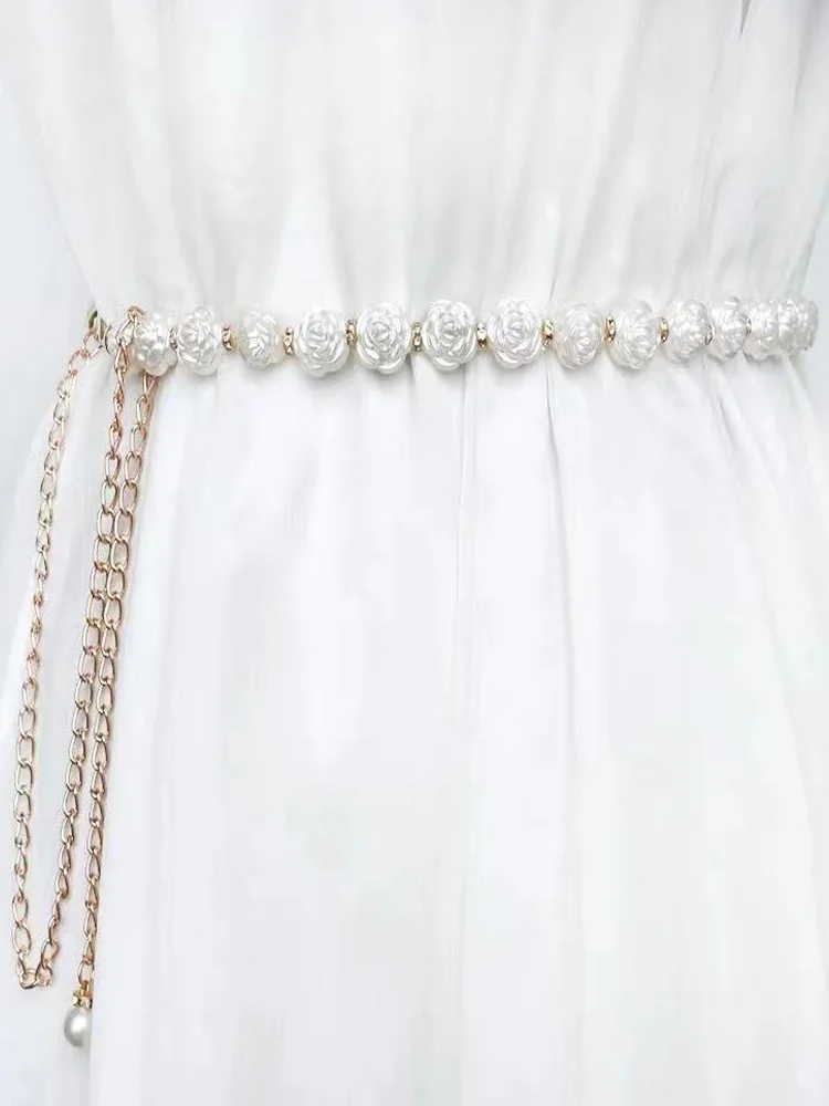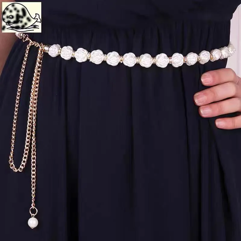 Металлическая тонкая цепь, Модный женский пояс, имитация жемчуга, цветок розы, пояс, аксессуары для пояса