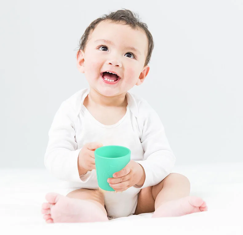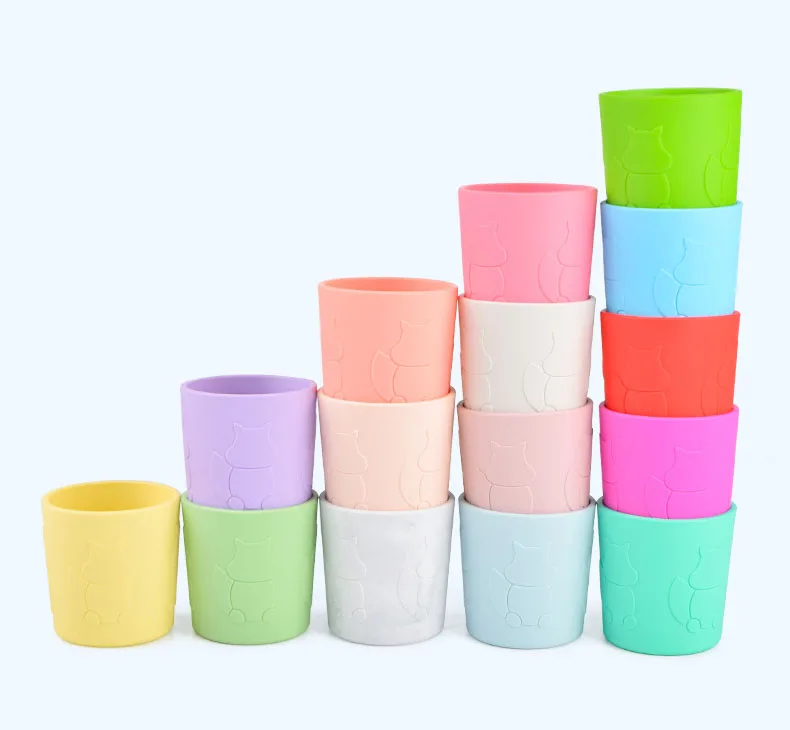 Детская силиконовая разноцветная чашка для питьевой воды и молока