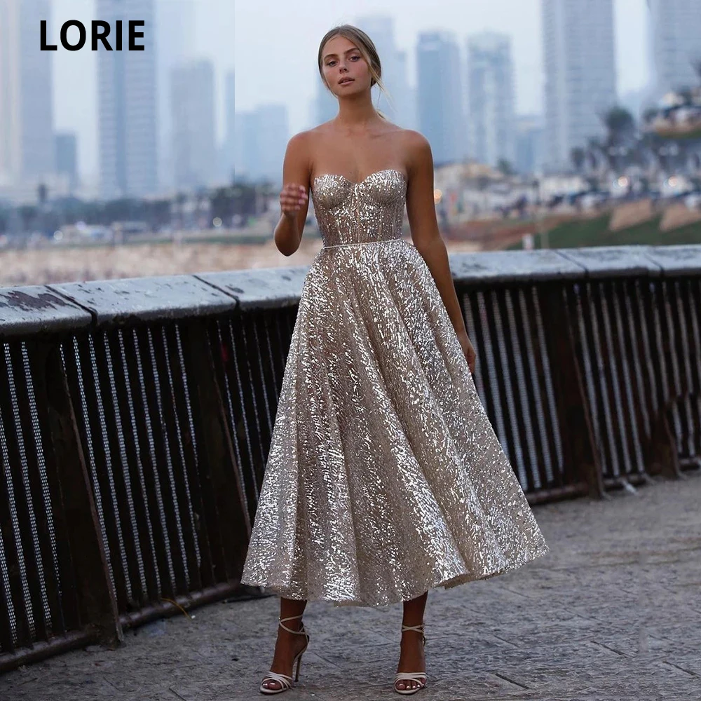 Кружевные платья для выпускного вечера LORIE, блестящие, трапециевидные, короткие, с открытой спиной, без рукавов, до середины икры