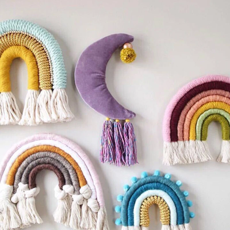 Материал: сделанные вручную красивые украшения из пряжи и хлопковой веревки. Добавьте характер и очарование к любой стене в вашем доме с помощью этой тканой радужной стены.