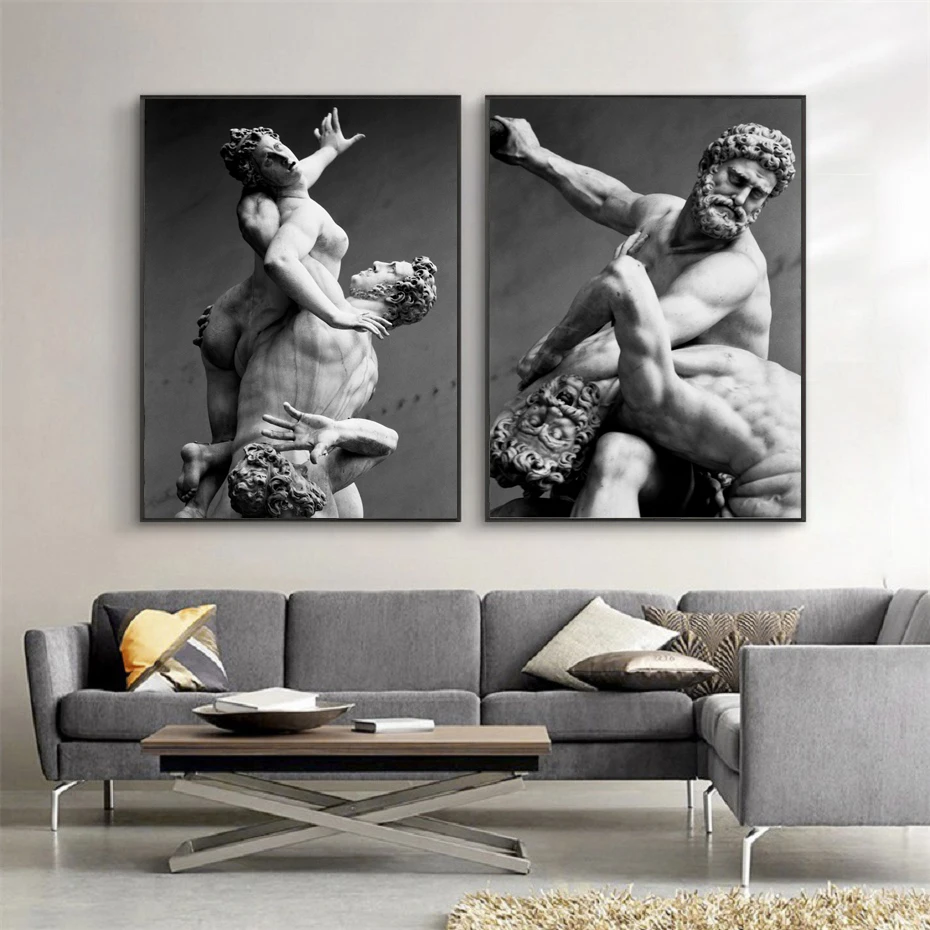 Современная черно-белая скульптура Давида, плакаты, абстрактная Обнаженная Картина на холсте, принты, Настенная картина, украшение для комнаты и дома