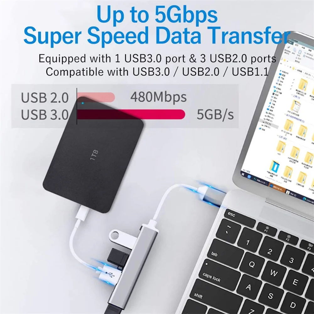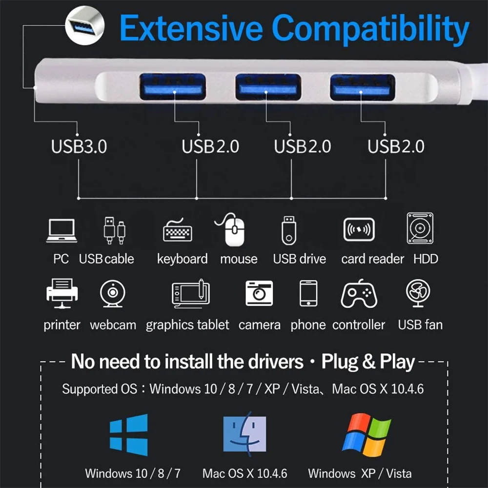 Адаптер OTG 4 в 1 с USB 3,0 на 4-USB для ноутбука, ПК, Macbook Pro Air
