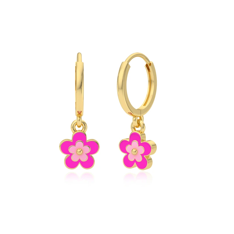Женские серьги-кольца из серебра 925 пробы с подвеской в виде цветка