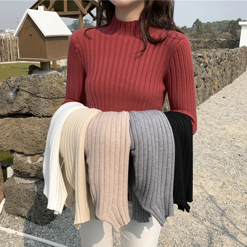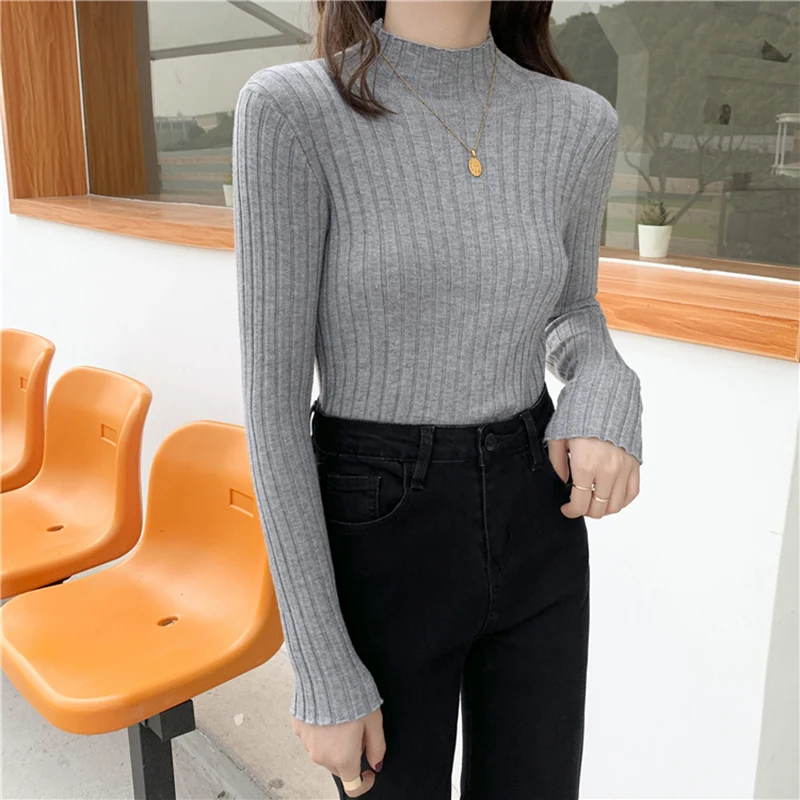 Свитер Zohoha женский модный осенний облегающий свитер с высоким воротом мягкие однотонные облегающие пуловеры женские универсальные вязаные свитера