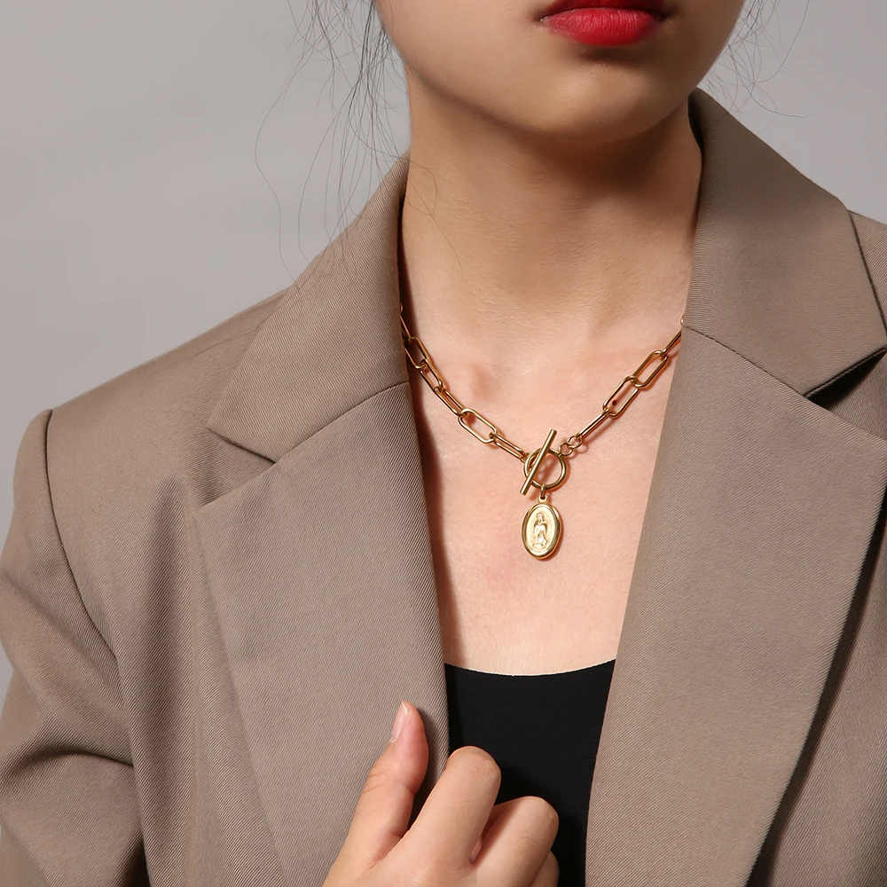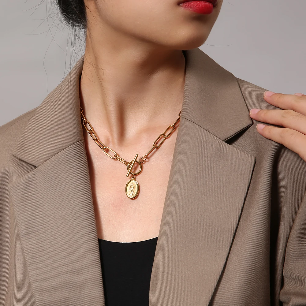 Женское винтажное ожерелье FANSHIDI, ожерелье с медалью и монетницей, чокер из нержавеющей стали на массивной цепочке