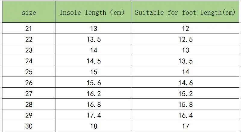 Дорогие друзья:Поскольку все размеры детской обуви отличаются, при заказе детской обуви вы должны соответствовать нашим размерам и внутренней длине.Согласно длине стельки. (длина стельки = длина стопы + 1 см)Американский размер не является стандартным, просто удобно для вас сделать заказ.Удобная длина стопы составляет около 1 см.И из-за длительного времени доставки авиа-отправление Почты Китая и ребенок быстро вырастет, пожалуйста, выберите обувь большего размера для вашего ребенка.Измерение выполнено ручным способом, возможно, 0,1-0,5 см; Она вполне допустима приПожалуйста, выберите правильный размер.Вся обувь будет отправлена с пузырчатыми сумками, без коробок!